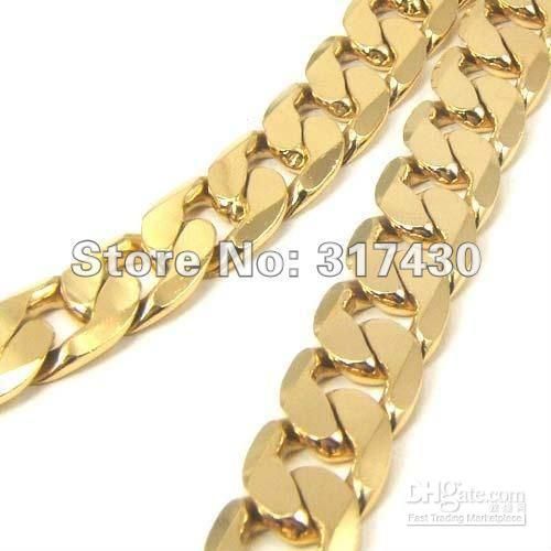 Yakisikli 15mm 316l Paslanmaz Celik Sari Altin Kolye Zinciri