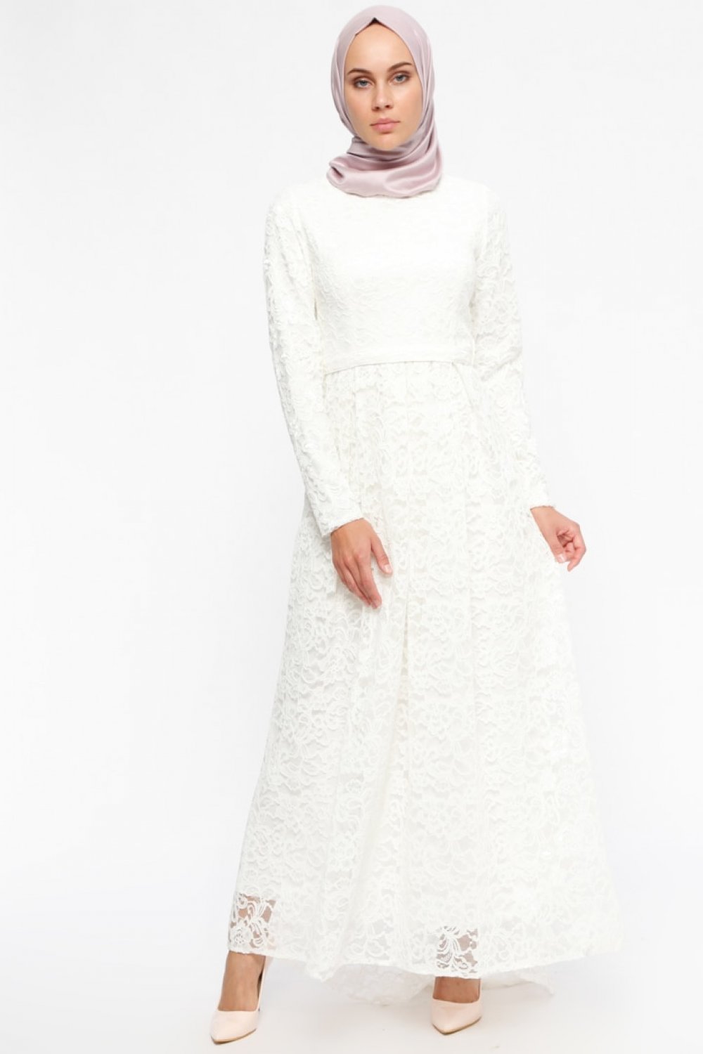 89 99 Tl Dantel Detayli Beyaz Abiye Elbise Modeli 6482b