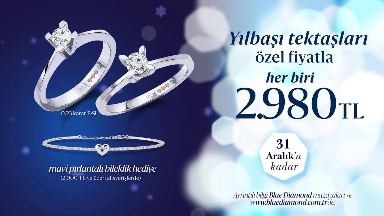 Blue Diamond Marmaris Pirlanta Elmas Yuzuk Kolye Rose Beyaz Kupe