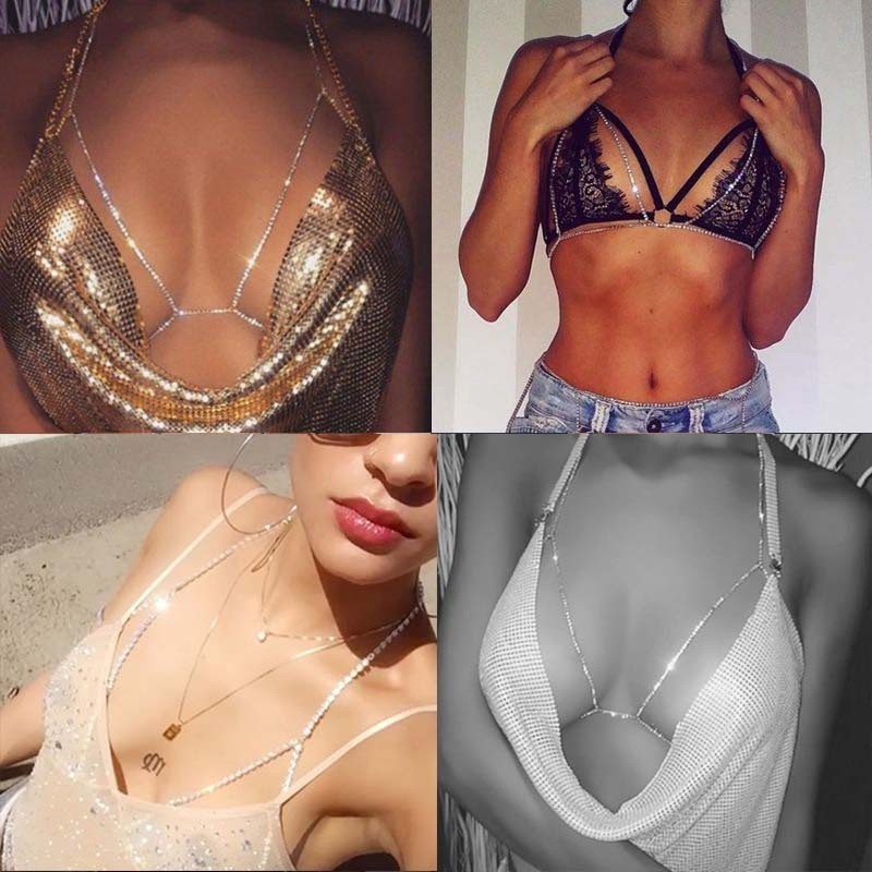 Sexy Women Shiny Crystal Rhinestone Bra Chest Body Chains Bikini