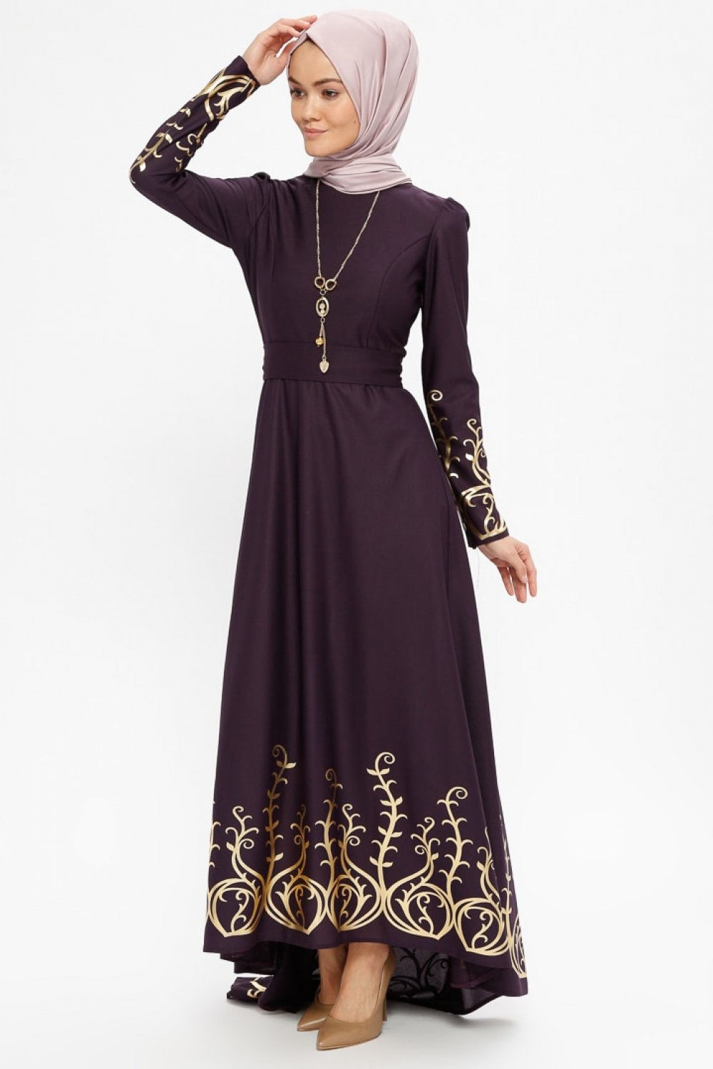Ayse Melek Tasarim Mor Kolyeli Varakli Abiye Elbise Elbisebul