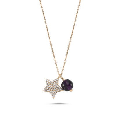 Dr Stone Kadin Rose Altin Kaplama Ametist Tasi Kolye Krb257