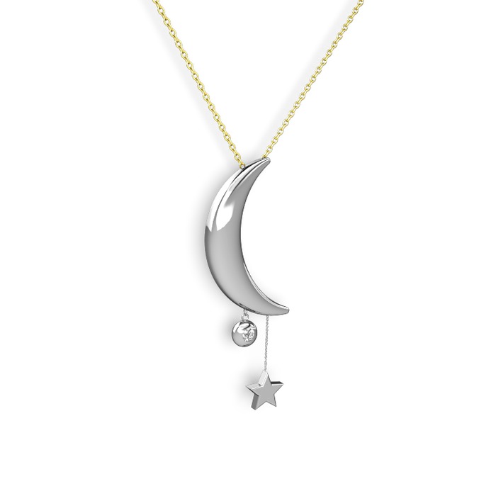Altinda Moda Beyaz Altin Tasli Ay Yildiz Kolye Fiyati
